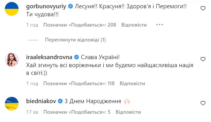 У коментарях друзі та шанувальники привітали Нікітюк із днем народження. "Слава Україні! Нехай згинуть усі вороги і ми будемо найщасливішою нацією у світі", - пишуть люди. - "Нехай бажання здійснюються якнайшвидше, бо це одне бажання для всіх українців. Слава Україні. Героям слава!"