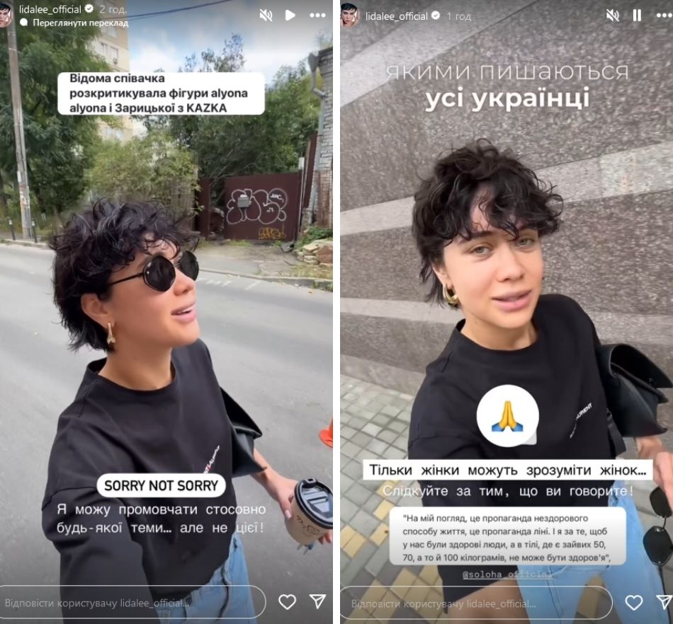 Lida Lee не змогла пройти повз висловлювання своєї колеги. Свою думку співачка висловила в Instagram-історіях.