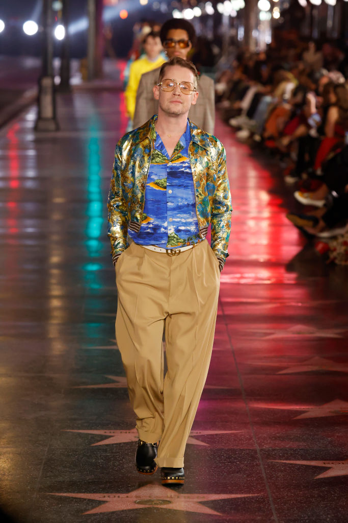Маколей Калкін, який зіграв роль Кевіна Маккаллістера у різдвяній комедії "Сам удома", став зіркою подіуму. 41-річний актор взяв участь у показі колекції Gucci Love Parade – шоу пройшло у Лос-Анджелесі на Голлівудському бульварі.