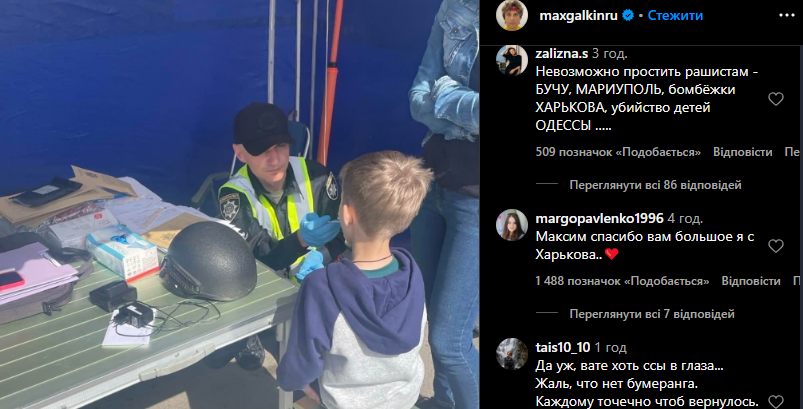 На сторінці в Instagram шоумен розкритикував дії країни-терористки та висловився з цього приводу. Галкін наголосив на тому, що ціна агресивних дій окупантів - життя невинних людей, багато з яких досі під завалами. Максим висловив співчуття всім потерпілим.