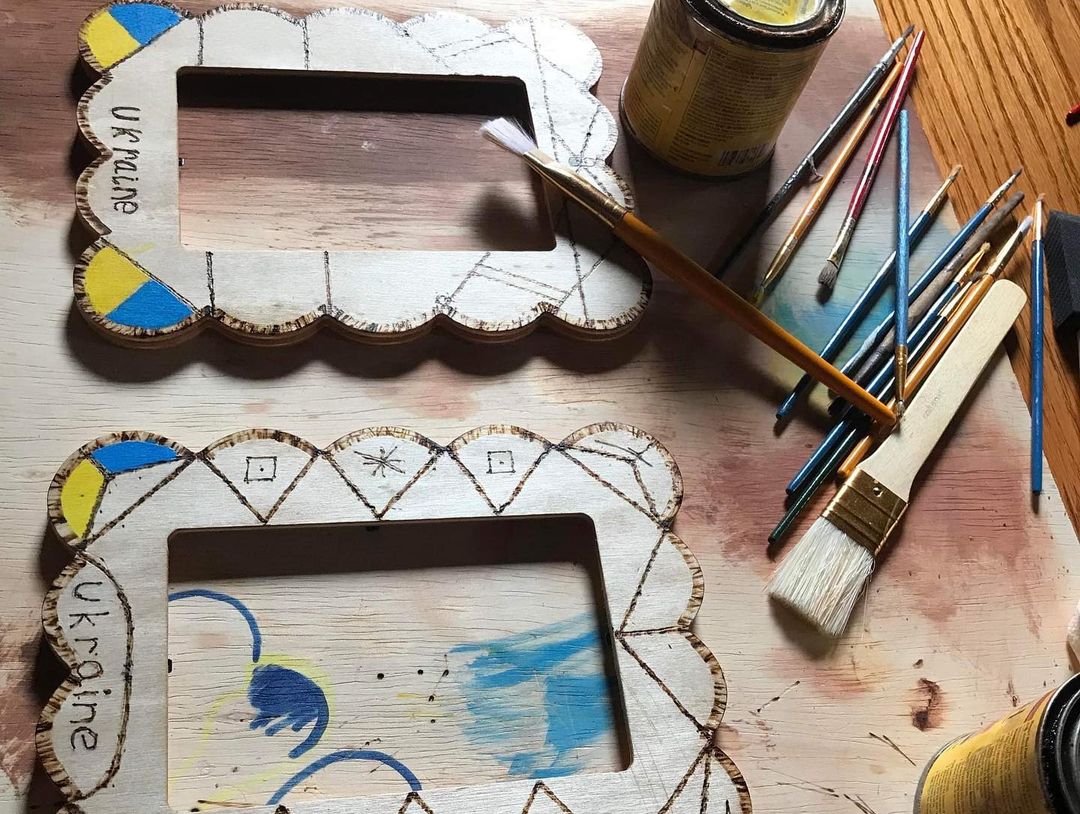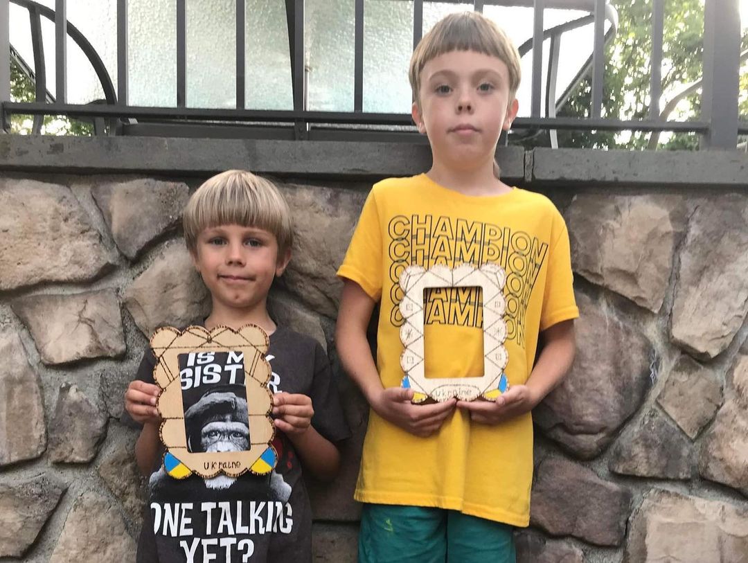 "Хлопчики дуже старалися: спочатку кожен намалював свій орнамент на папері, потім переніс його на відшліфовану наждачкою рамку. Потім затоновували і нанесли на дерево "стейн", аби захистити його від вологи. Тоді вибирали як позначити їх українською символікою (так появився надпис і синьо-жовте фарбування)", - поділилася мама Тараса.