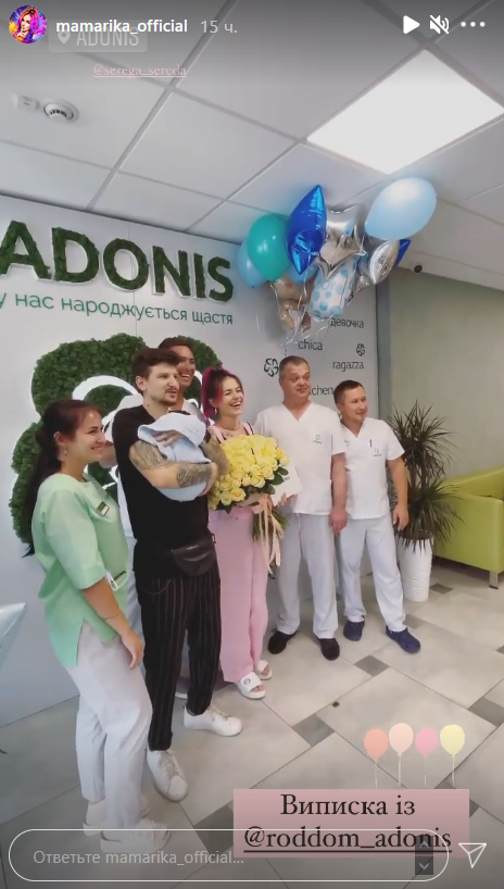 Кілька днів тому MamaRika вперше стала мамою. 2 серпня співачка подарувала своєму чоловікові, комедійному акторові Сергію Середі, сина, ім'я якого поки тримається в секреті. Через чотири дні після пологів щаслива мама разом з малюком виписалася з пологового, про що розповіла в Instagram.