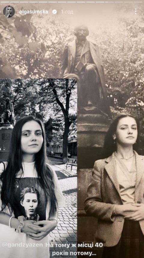 Наступним Сумська оприлюднила фото своєї доньки, яка постала на тому ж місці у практично ідентичній позі. "Ганна на тому ж місці 40 років потому", - зазначила у підписі до світлини Ольга.