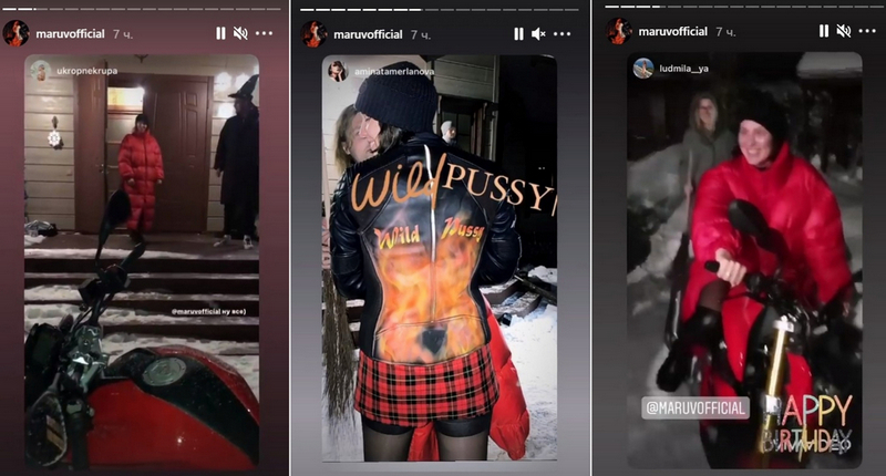 В особистих "сторіз" Maruv зізналася, що давно мріяла навчитися водити авто та мотоцикл. Тепер у неї буде така можливість - співачці подарували новенький Mini та ефектний червоний байк. А до нього - шкіряну курточку з принтом Wild Pussy ("Дика кіска").