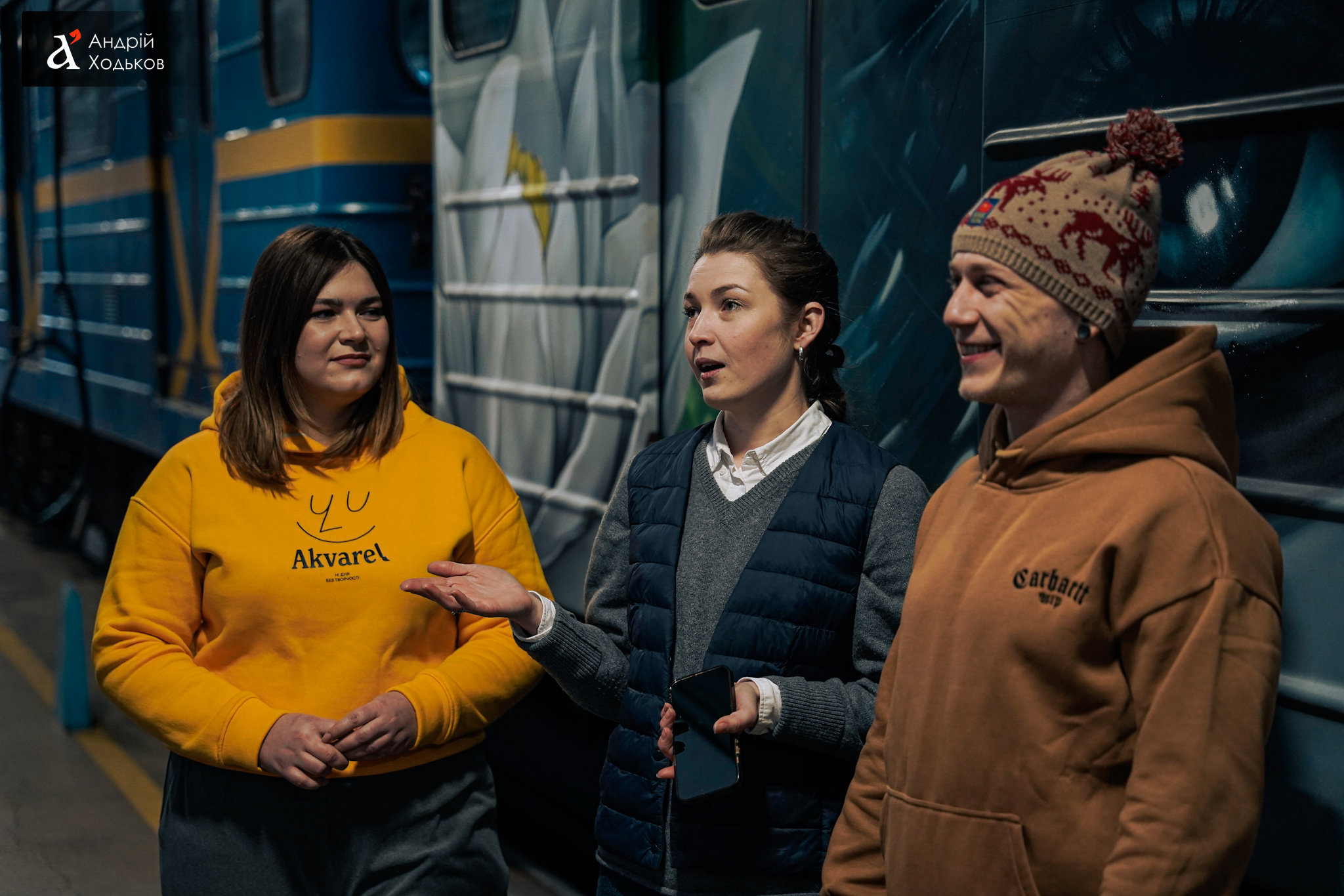 Артвагон курсуватиме "синьою" гілкою метро протягом двох місяців. Партнером артініціативи стала мережа магазинів Akvarel, яка надала професійні фарби та матеріали для створення розпису.