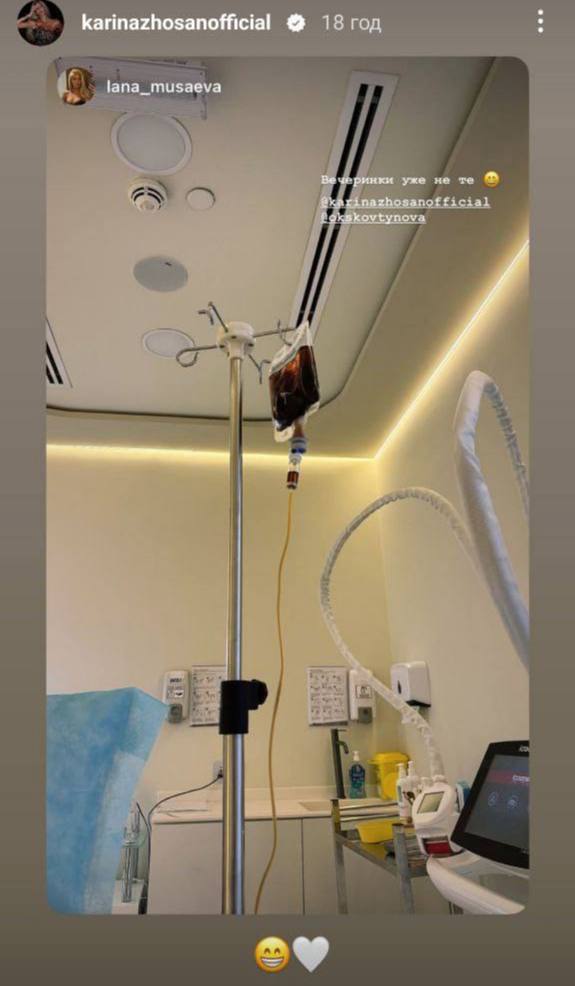 Українська модель, блогерка, переможниця конкурсу "Міс Україна Всесвіт 2018" Каріна Жосан вірогідно через зловживання алкоголем змушена була лягти під крапельницю у Дубаї.