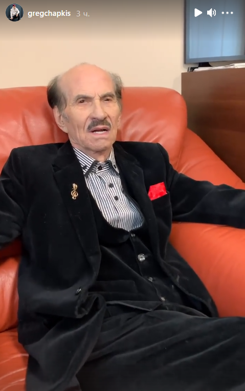На кадрах ролика, опублікованого у "сторіз" видно, що 91-річний артист почувається недобре: ледве говорить та важко дихає. При цьому Чапкіс не втрачає бойовий дух і виходить подихати свіжим повітрям "при параді" - у костюмі, пальто та хутряній шапці.