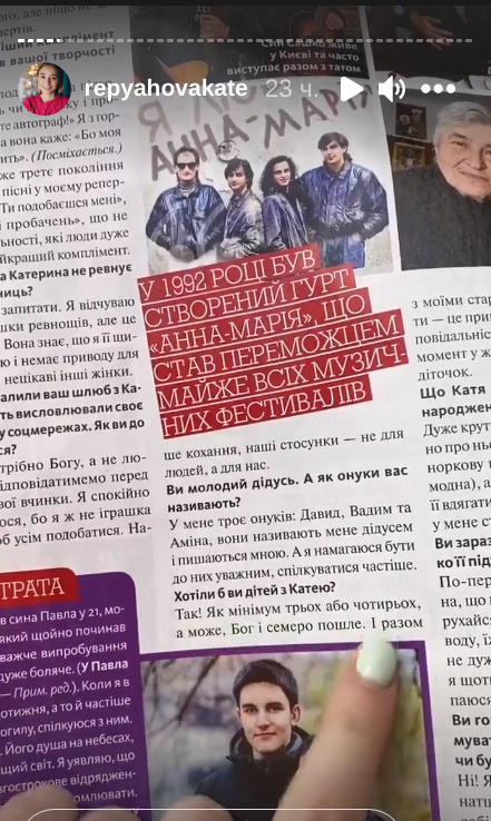 У Instagram-історіях Катерина повідомила, що вони з чоловіком вже знають стать майбутньої дитини. Також вона поділилася цитатою з інтерв'ю Павлика, в якому той заявив, що хоче з нею як мінімум трьох дітей.