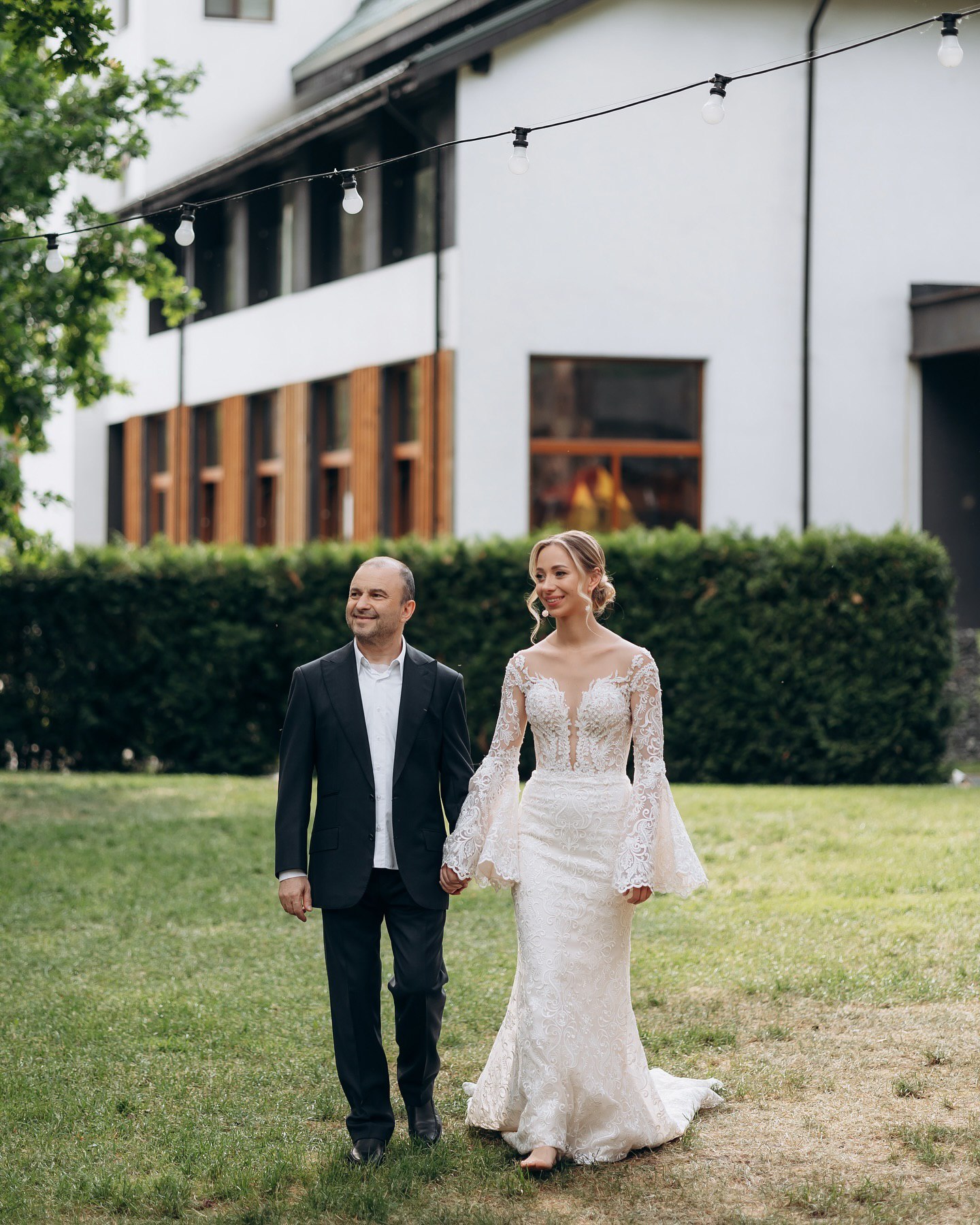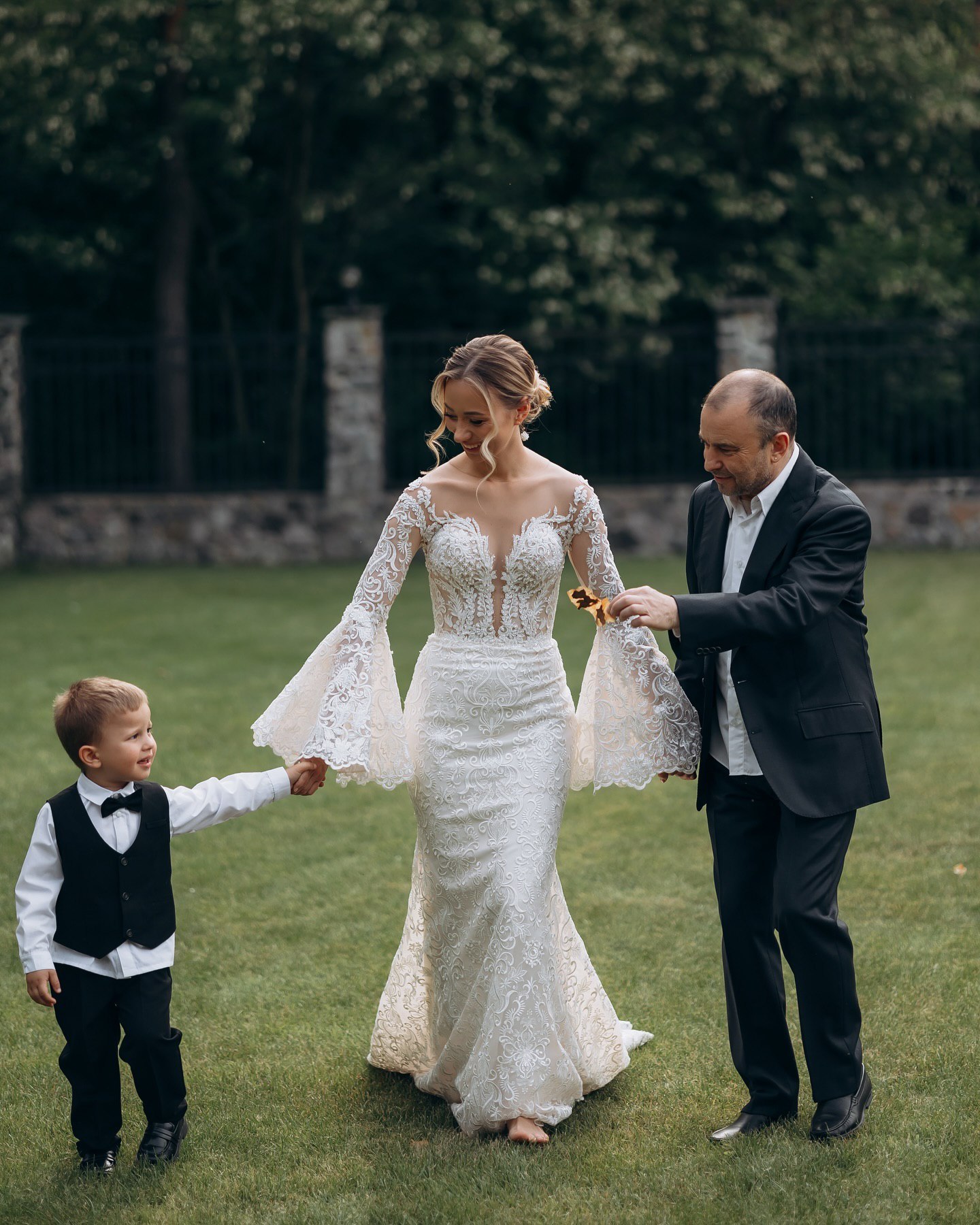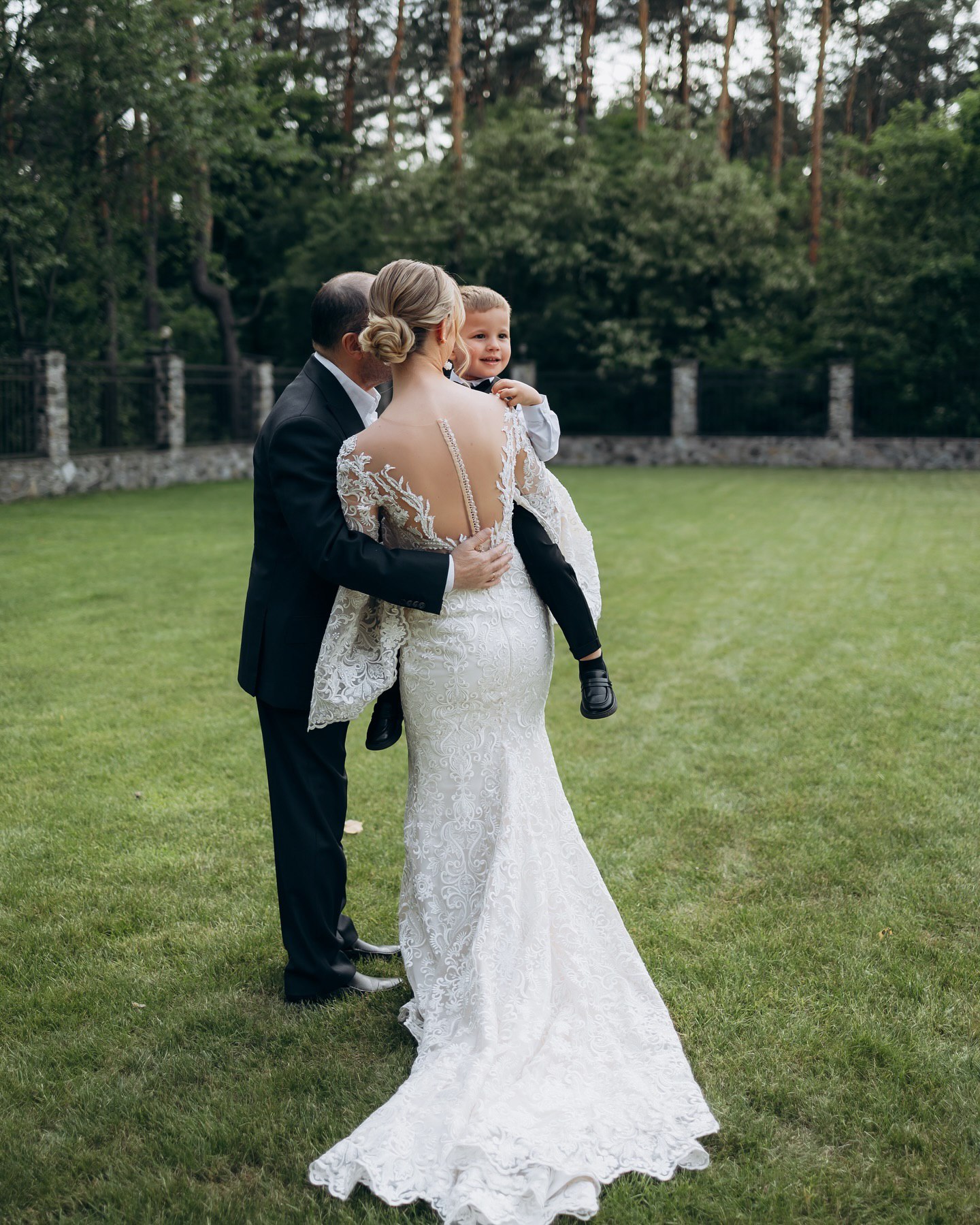 Віктор Павлік, який нещодавно переніс складну операцію на серці, постав на святкуванні у чорному костюмі, який доповнив білою сорочкою та класичним взуттям. Михайло, син пари, також з'явився у чорно-білому святковому вбранні.