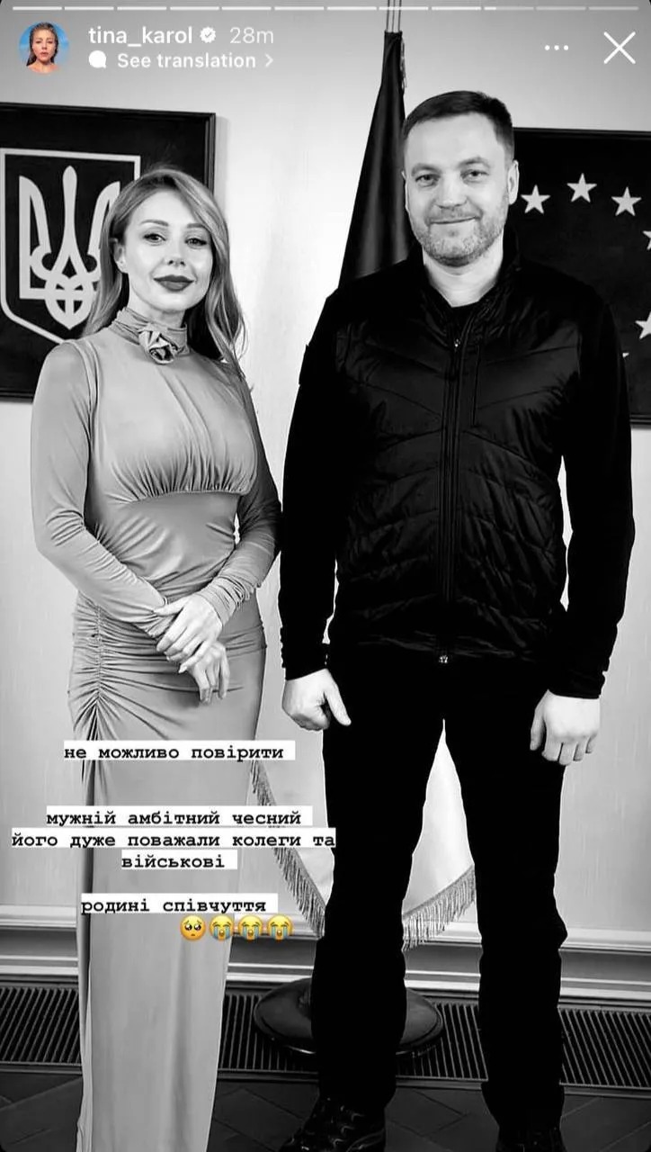 Артистка опублікувала в Instagram-історіях спільне фото із загиблим міністром МВС. "Неможливо повірити. Мужній, амбітний, чесний. Його дуже поважали колеги та військові. Родині співчуття", - написала вона.