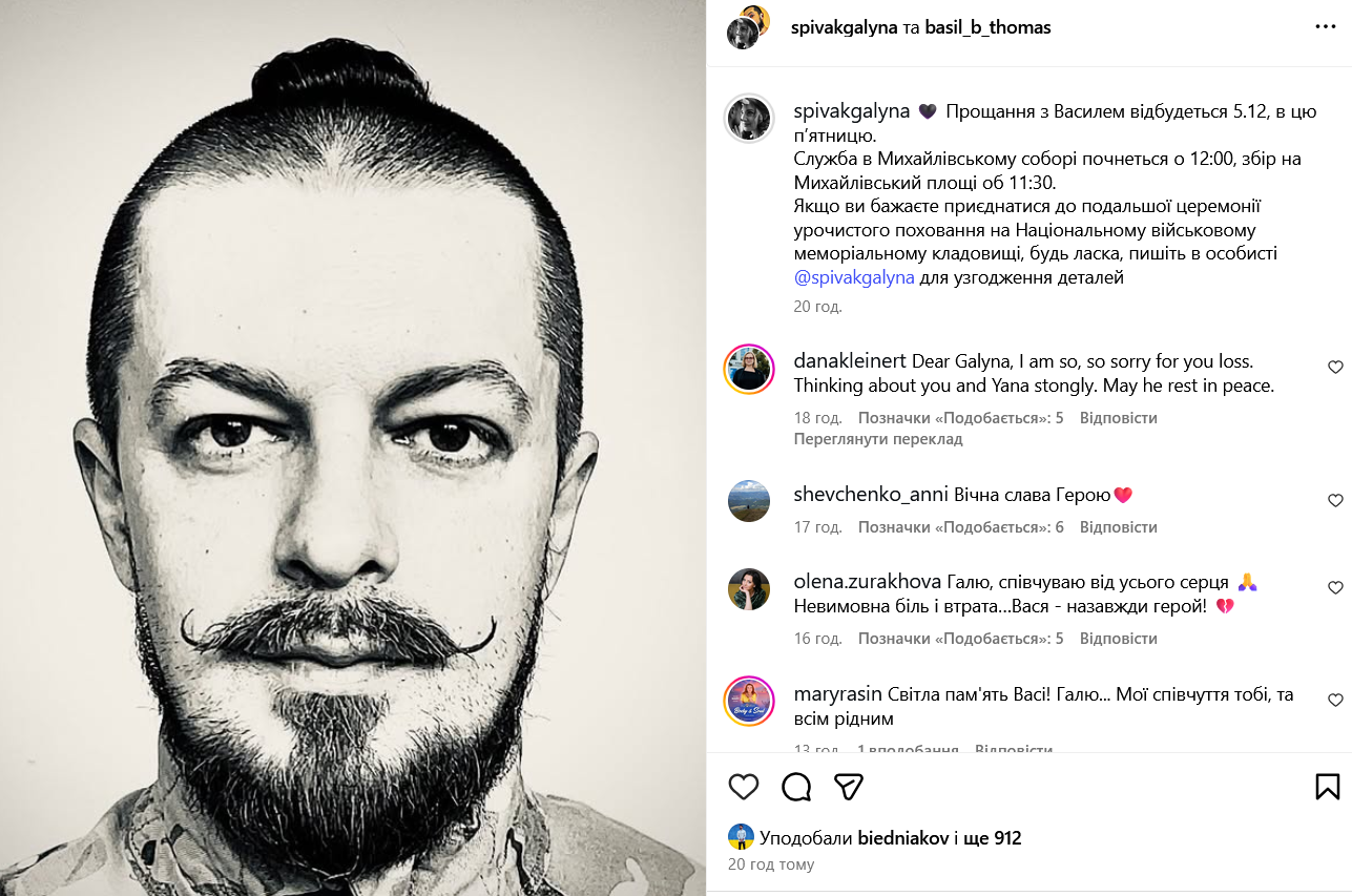 Трагічну звістку в Instagram повідомила його дружина Галина Співак. Вона розповіла, що Василь віддав життя за Україну 2 жовтня - саме тоді, коли він зник безвісти при виконанні бойового завданні.