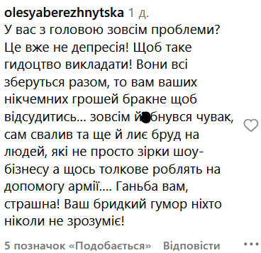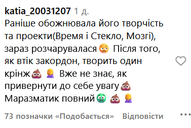 У коментарях українці написали, що розчаровані в артисті, чия творчість колись викликала захоплення, наголосивши, що таке відео недоречне навіть заради хайпу.