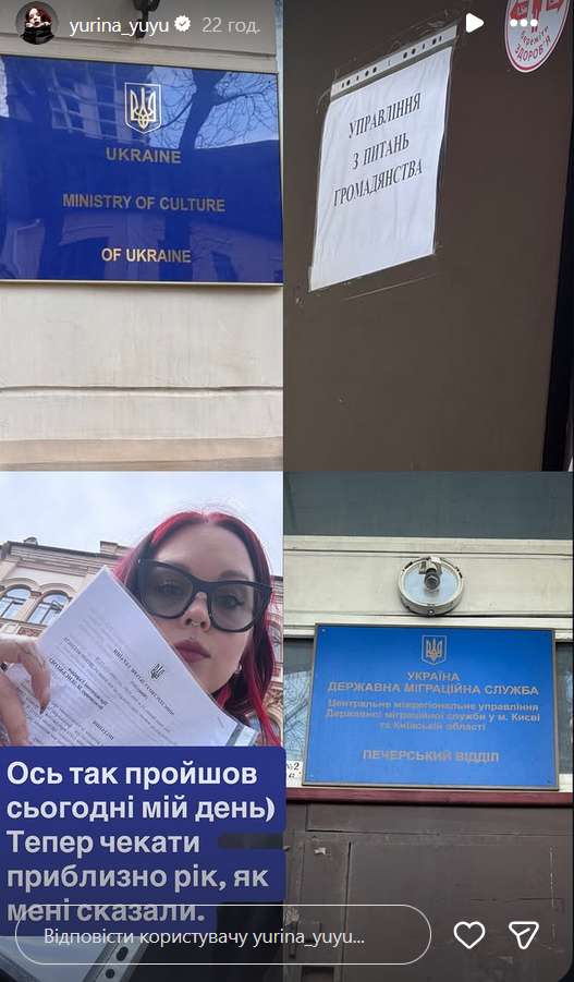 "Зранку я поїхала у Міністерство культури і забрала подання на президента України для того, щоби подати документи на зміну громадянства. Потім я зібрала документи і поїхала у Державну міграційну службу. Принесла документи, ми їх оформлювали в декілька заяв майже дві години. Все підписали і з радістю можу повідомити, що в мене сьогодні, 17 березня 2026 року, прийняли документи на зміну громадянства".