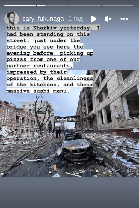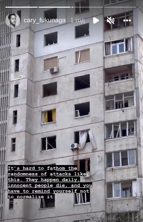Режисер фільму про Бонда "Не час помирати" та серіалу "Справжній детектив" поділився фотографією наслідків обстрілу.