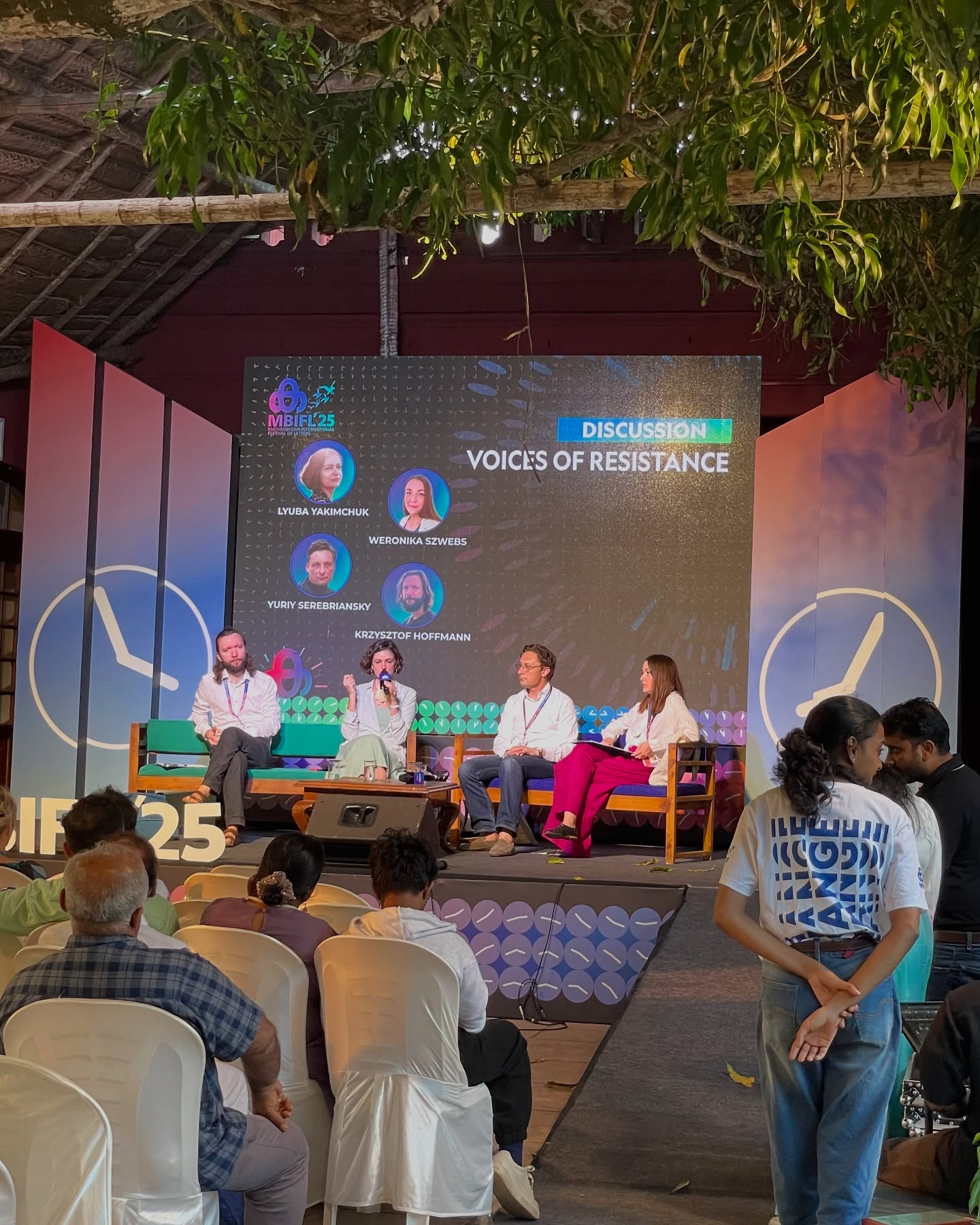"Навіть офіціанти. Співчувають. На фестивалі ми мали декілька панельних дискусій та можливість відвертих розмов. Хоча з якоїсь іншої локації було чутно, що Трамп -- "це новий месія". Ну, з ким не буває, у нас теж такі є. Усі події були англійською та місцевою мовою малаяма, яку, як кажуть, не так просто всім іншим вивчити. Вона красива, як і граційне кивання головою, яке означає схвалення або задоволення чимось, як мені здалося з ситуацій. Це робиться м'яко, лише основою шиї, тому голова як на пружинці хилитається вправо-вліво...