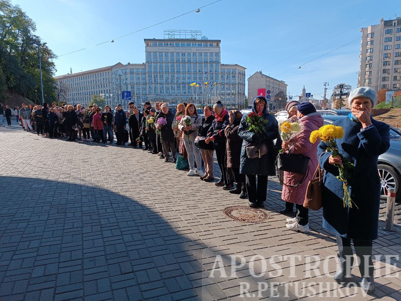 Ніна Матвієнко не дожила двох днів до свого 76-річчя. Причину смерті співачки сім'я поки не розкриває, але її друзі та колеги згадували про тяжку хворобу та кілька перенесених операцій. Фотокореспондент "Апострофа" Роман Пєтушков показав, як відбувається прощання з артисткою. Біля Національної філармонії зібралася величезна черга, люди несуть квіти та оплакують Матвієнко.