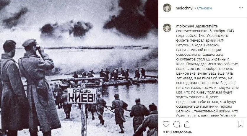 Нагадаємо, у листопаді 2019 року Молочний на своїй сторінці в Instagram розмістив допис, в якому заявив про "фашистів у Києві":