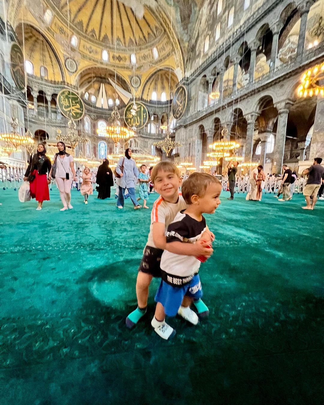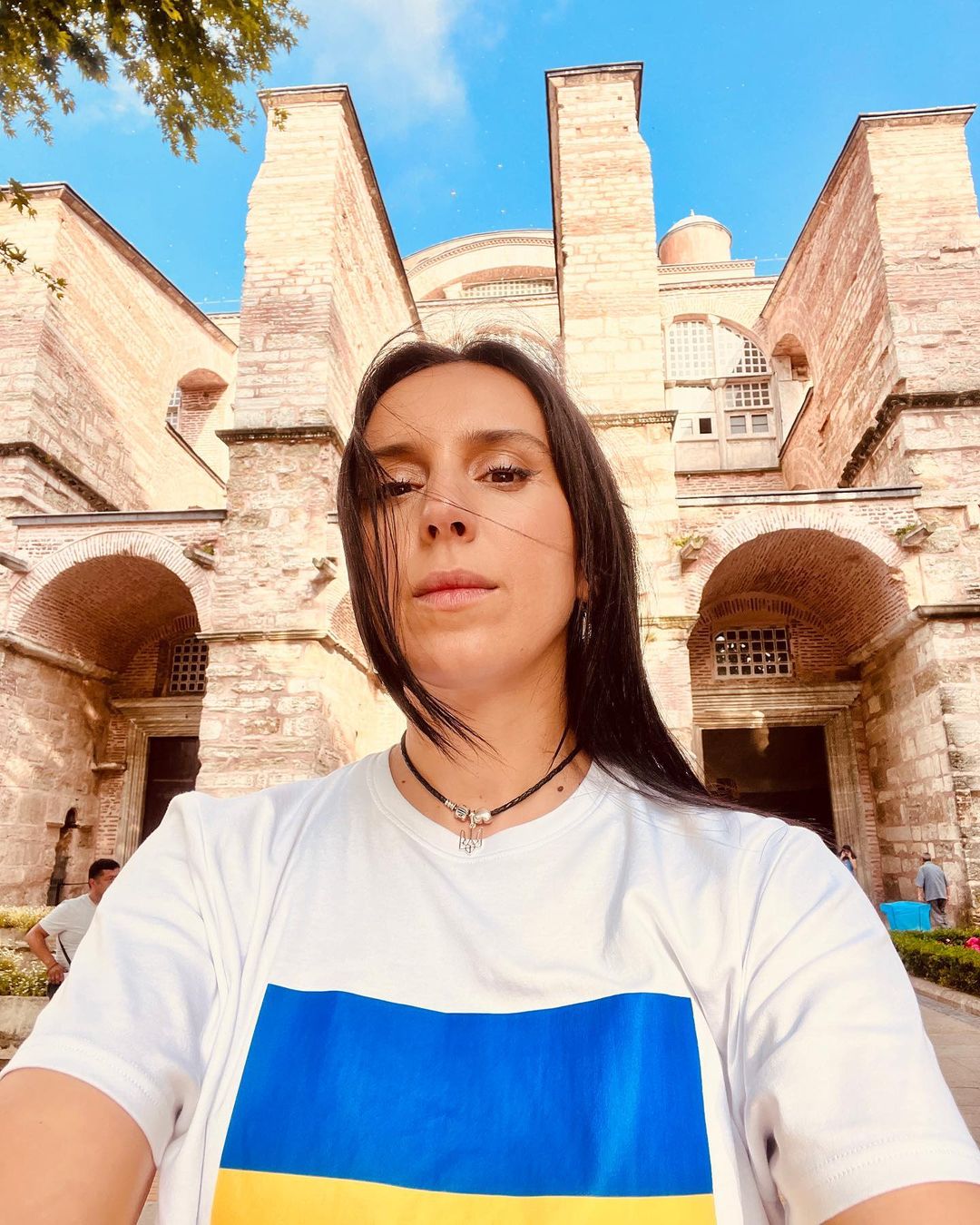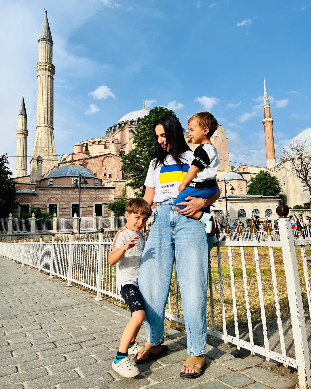 Джамала з синами пройшлися мальовничими вуличками турецького міста та відвідали собор святої Софії (мечеть Айя-Софія). Для прогулянки Стамбулом українська співачка обрала патріотичну футболку та підвіску з тризубом.