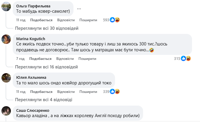 Оголошення у мережі Facebook про продаж ліжка, килима та дзеркала за шалені 300 000 грн спантеличило та водночас розвеселило українців.