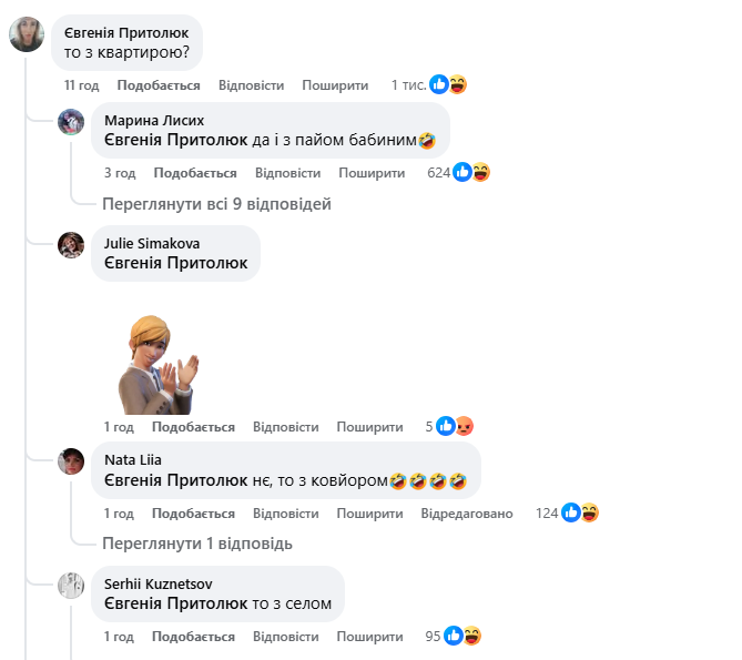 Одна з користувачок - Євгенія Притолюк - поцікавилась: "то з квартирою?".