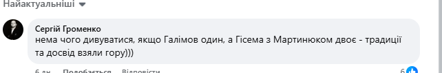 "Нема чого дивуватися, якщо Галімов один, а Гісема з Мартинюком двоє - традиції та досвід взяли гору)))".