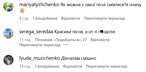 "Оля і Маша, це просто прояв неповаги до людей, яких назавжди забрала війна. Як притрушені сміялись під час такої душевної пісні".