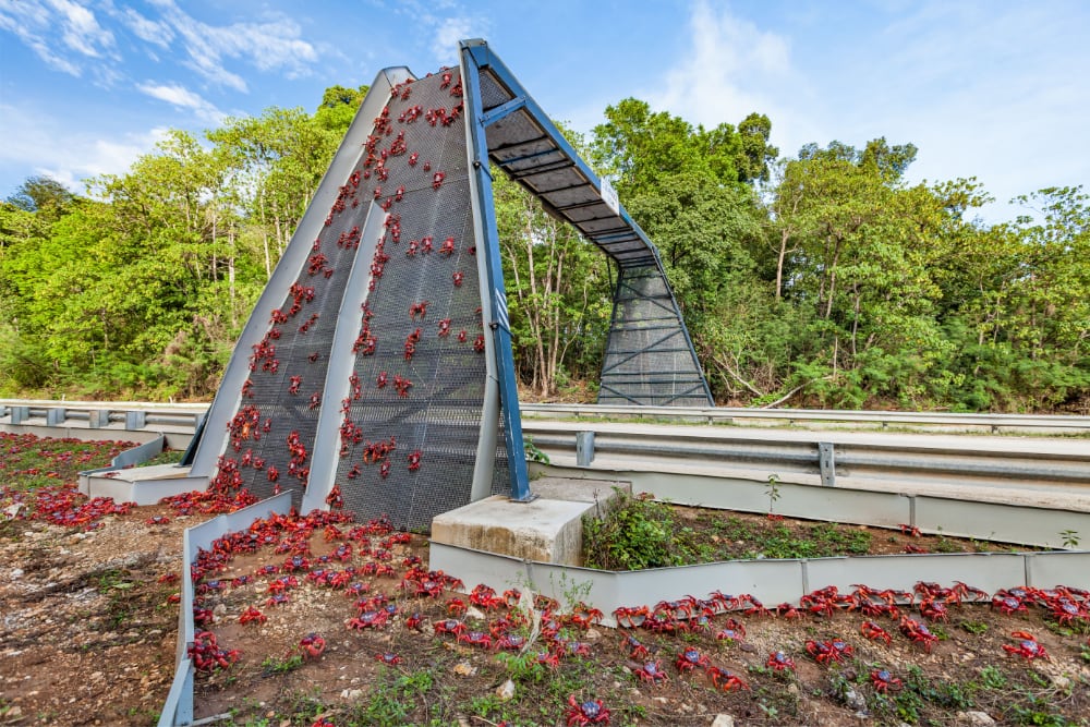 Подорож членистоногих відбувається у листопаді-грудні та в середньому займає 18 днів. У цей час острів буквально червоніє, а влада перекриває автомагістралі, щоб не наражати крабів на небезпеку. Також для них відкривають тимчасові мости, а робітники та волонтери допомагають застряглим мандрівникам долати перешкоди і згрібають їх з асфальту.