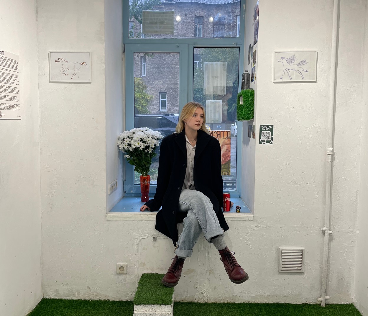 Анастасія Курчевська на експозиції "Пам'яті" у просторі Flowerbed Gallery