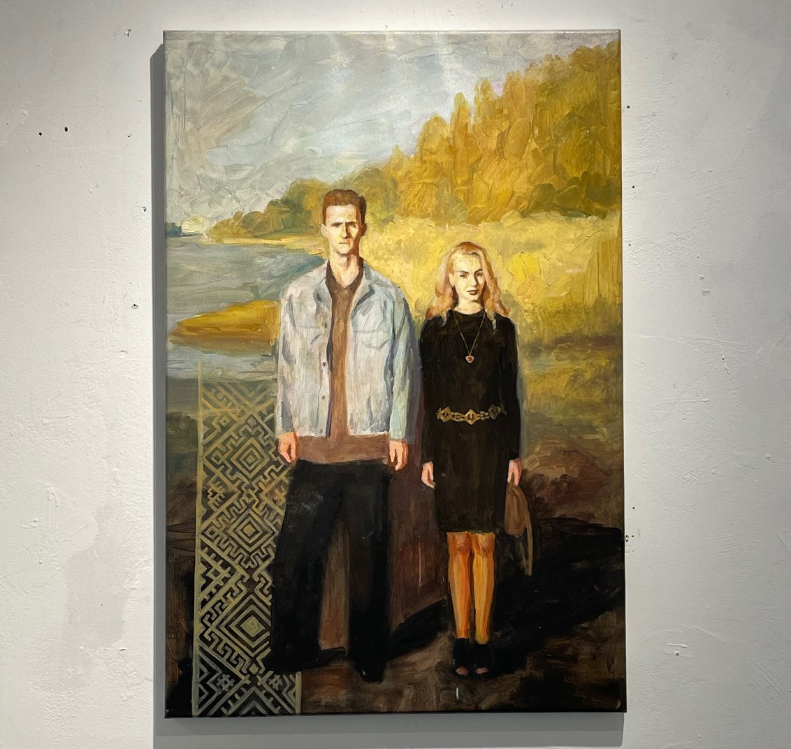 Полотно з зображенням батьків Анастасії та фрагмент кам'яної вишиванки ліворуч