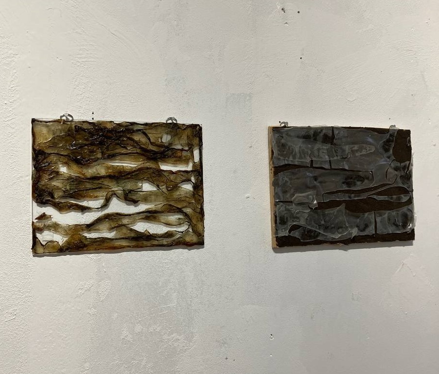 Роботи з чайного гриба (ліворуч) та створеного власноруч біопластику (праворуч), які відтворюють хвилі