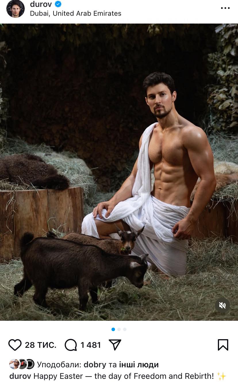 Сам же Дуров прокоментував світлини так: "З Великоднем - днем Свободи та Відродження!".