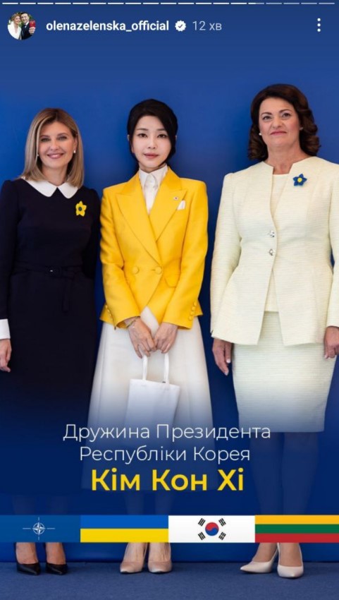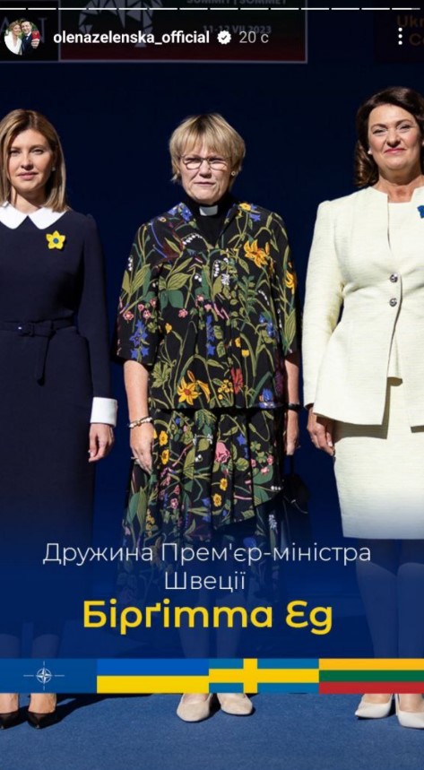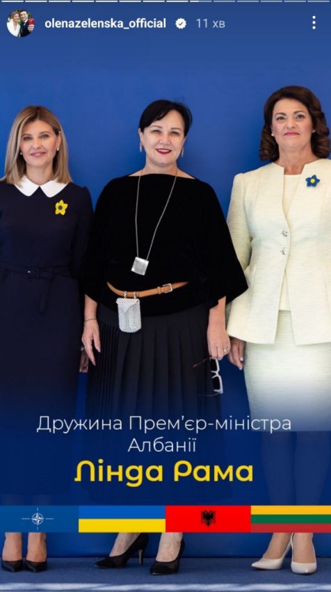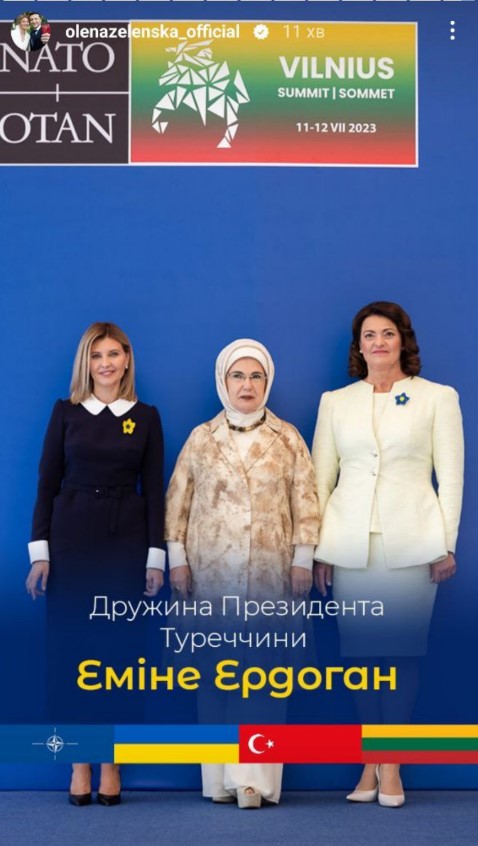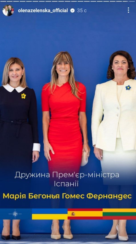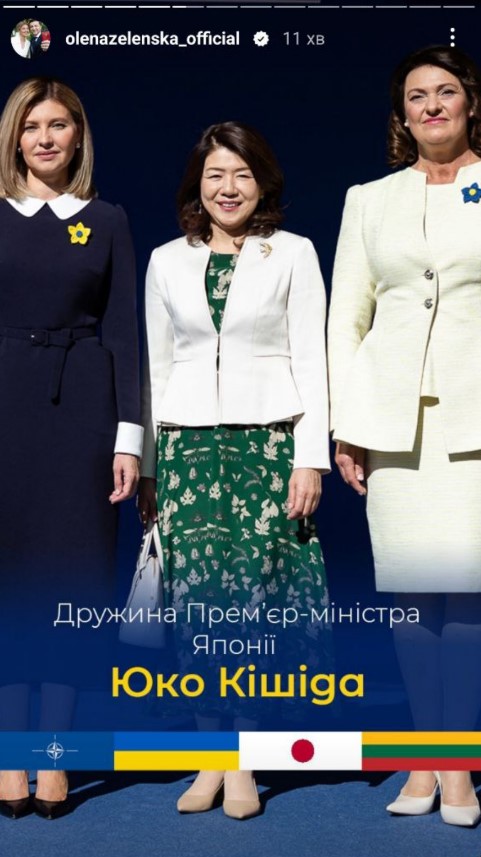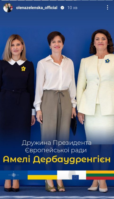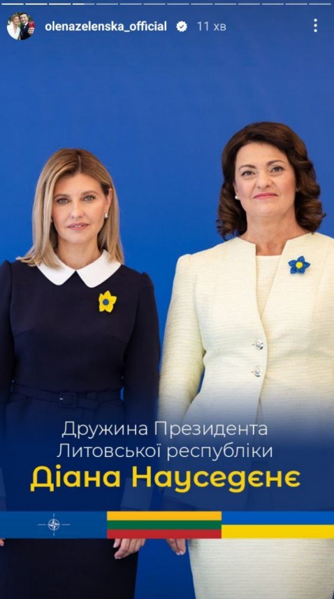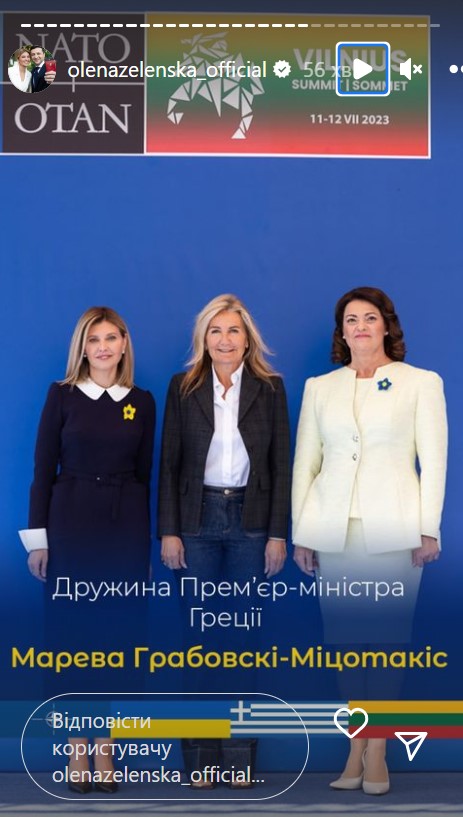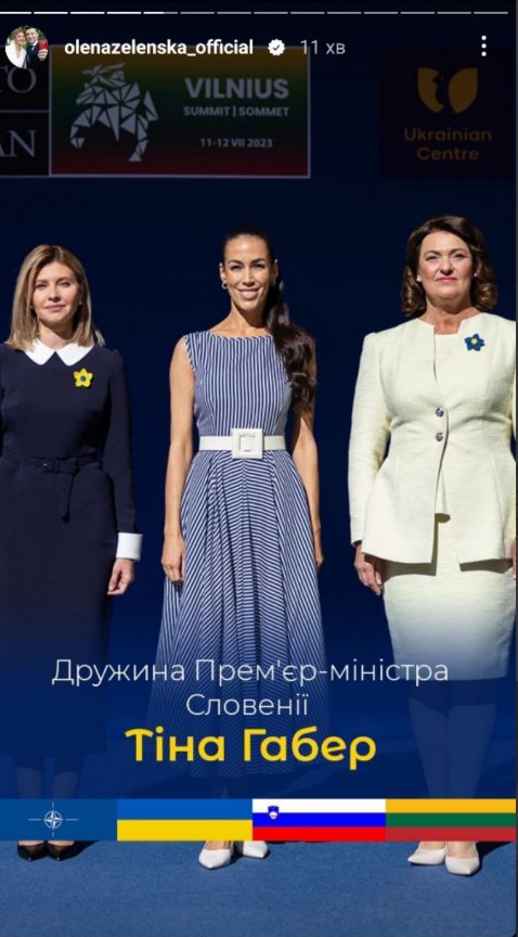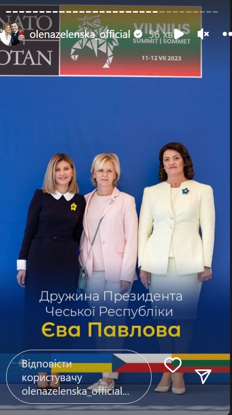 "Сьогодні зібралися з першими леді та джентльменами, які супроводжують свої подружжя під час саміту НАТО 2023. В українському центрі Вільнюса до нас доєдналися вимушені переселенці – українці, яких прихистила Литва", - зазначила Зеленська одній зі stories.