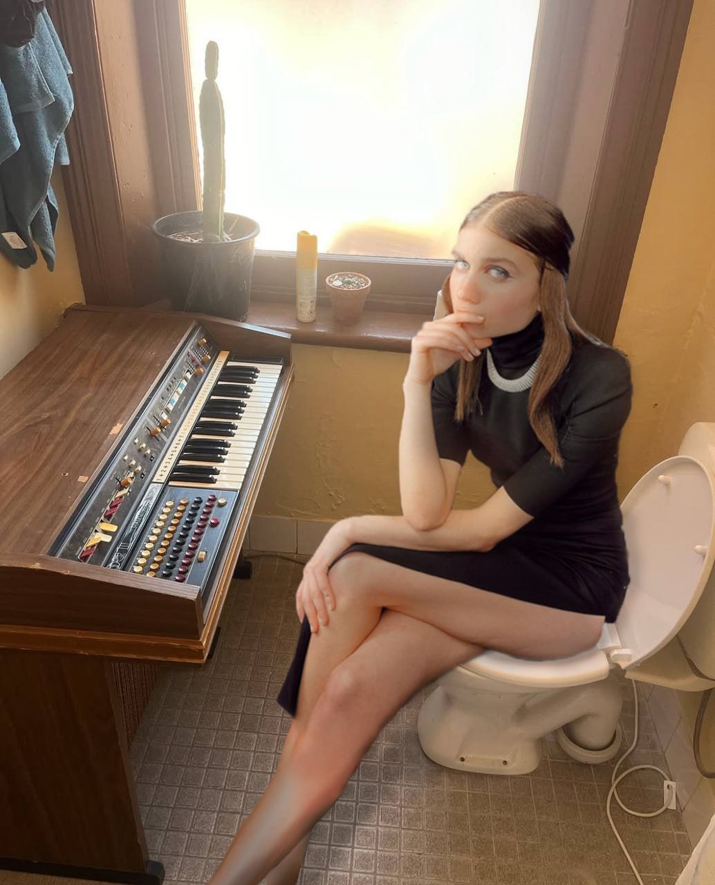 Співачка Jerry Heil поділилась кумедним фото, на якому у туалеті стоїть старий синтезатор, і пожартувала, що тепер це її нова студія.