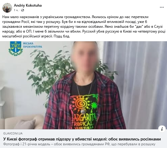 Як повідомляв "Апостроф", фотосесія у столиці України завершилась вбивством. І фотограф, і модель виявилися громадянами Росії.