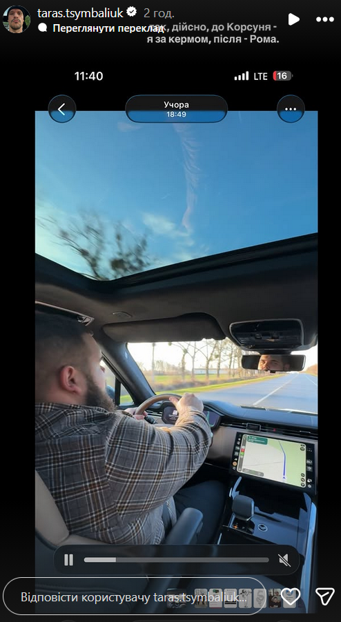 Крім того, Цимбалюк оприлюднив скріншот із відео, аби підтвердити, що на зворотному шляху за кермом був його друг.