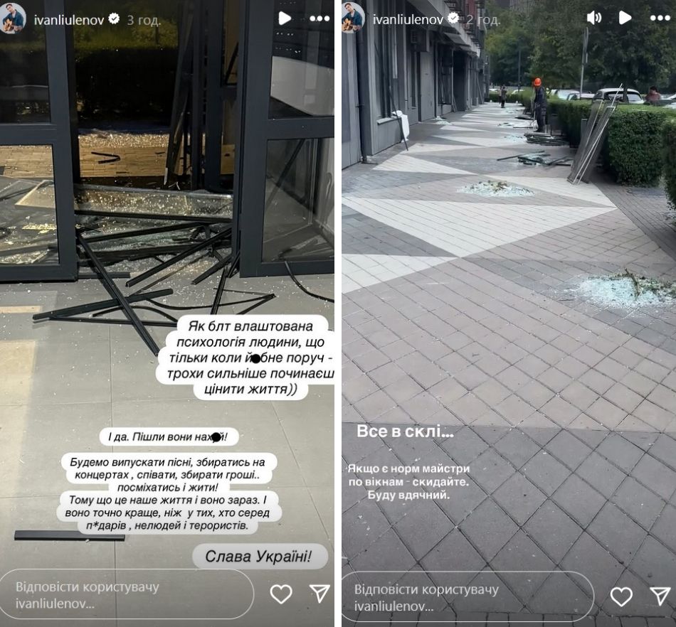 Про наслідки російського удару зірка "Ліги Сміху" повідомив у своїх Instagram-історіях. Він розповів, що прокинувся від потужного вибуху - влучання було зовсім поруч з його будинком. У квартирі Люленова вибито вікна та пошкоджено стіни. На щастя, сам він залишився неушкодженим.