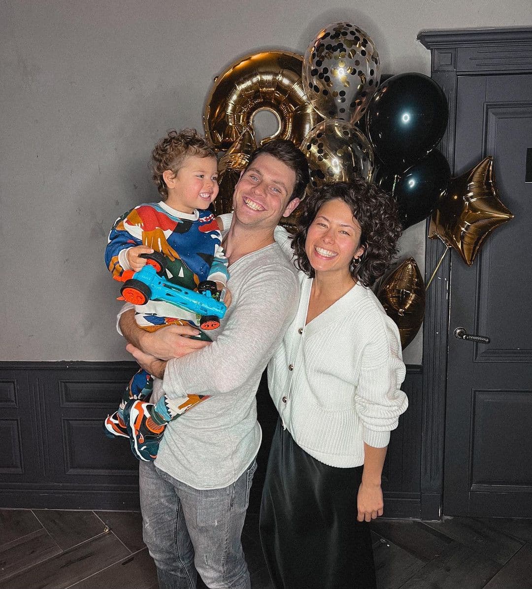 У своєму блозі у Instagram переможець "Танців з зірками" опублікував милі сімейні фотографії. На них вся сім'я позувала з променистими посмішками на тлі різнокольорових кульок і величезної цифри 3.