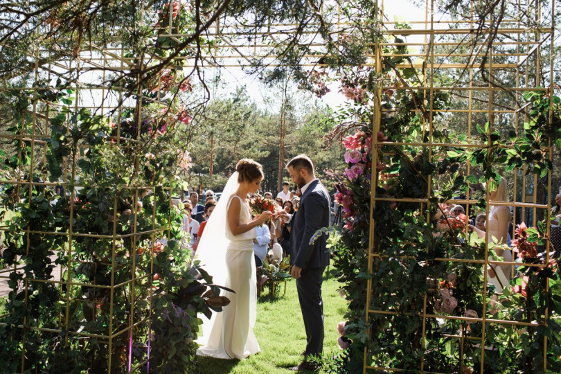 Весілля пари відбулася влітку 2018 року. На свято, яке проходило в одному із заміських комплексів під Києвом, було запрошено близько 75 осіб. Всі турботи взяло на себе івент-агентство, а наречений і наречена насолоджувалися приємною атмосферою.