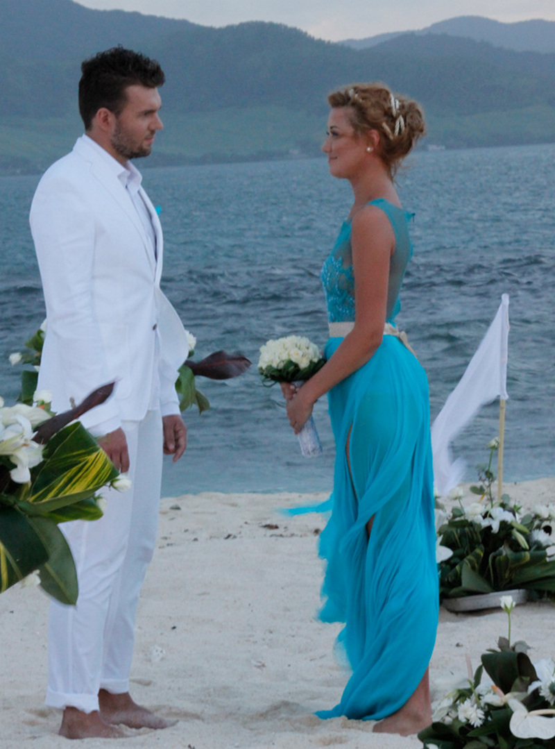 Примітно, що першу річницю весілля вони відсвяткували в тому ж одязі й теж в теплих краях. Як жартівливо зазначила дівчина, її "чоловік схуд і облисів".