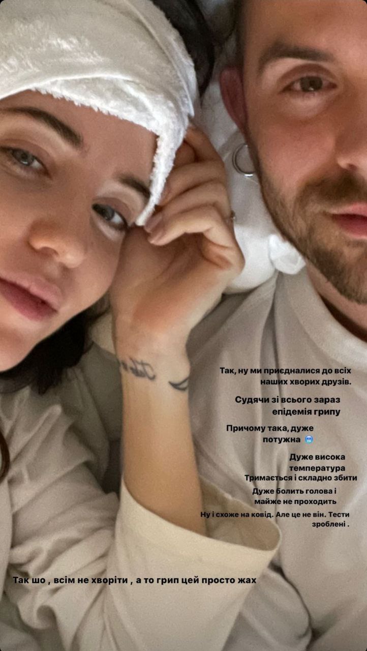 "Ми приєдналися до всіх наших хворих друзів. Судячи з усього, зараз епідемія грипу. Причому така, дуже потужна, - припустила Дорофєєва. - Дуже висока температура. Тримається і важко збити. Дуже болить голова і майже не проходить. Ну і схоже на ковід. Але це не він, тести зроблено. Так що всім не хворіти, а то цей грип - просто жах".