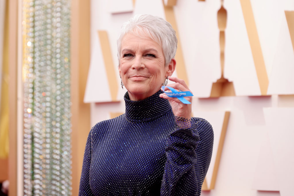 Акторка Джеймі Лі Кертіс з'явилася в ефектній сукні від Stella McCartney. Зірка підтримала народ України, одягнувши на палець блакитну стрічку із написом "#WithRefugees" (у перекладі – з біженцями) – на знак підтримки біженців із України. "Це неймовірно важливий момент з огляду на те, що відбувається в Україні, переміщення людей у світі, втеча людей", - заявила Кертіс, назвавши війну "важливою історією нашого часу".