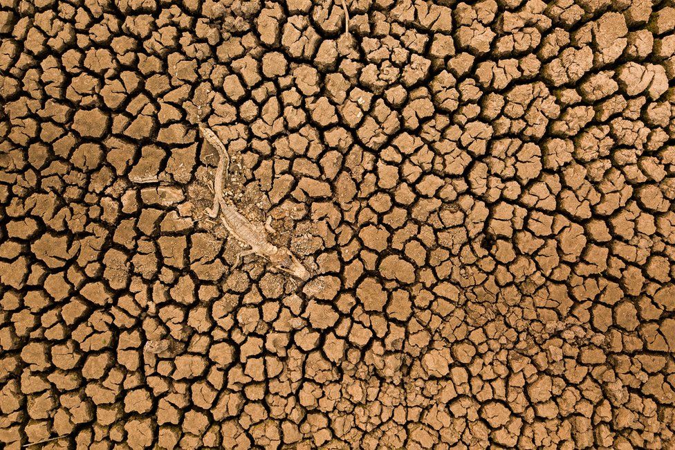 Мертвий кайман у сухій землі на узбіччі шосе в Поконі, Бразилія. Фотографію зробили за допомогою дрона у 2020 році в розпал посухи, вона перемогла в категорії "Пейзаж".