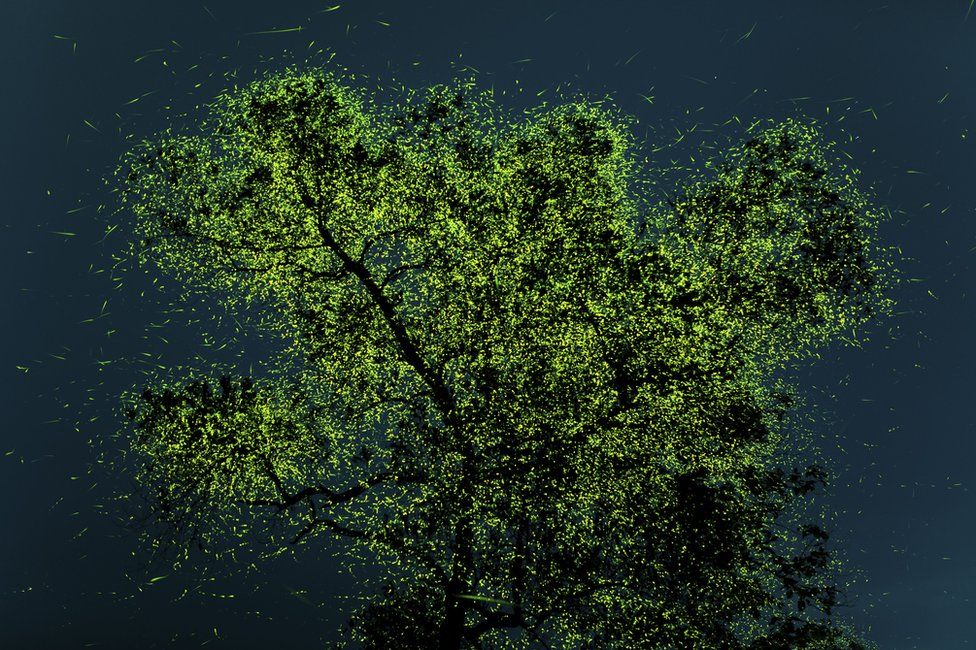 У деяких регіонах Індії незадовго до сезону дощів світлячки збираються навколо дерев. Це зображення складене з 32 окремих світлин, знятих на штативі з витримкою по 30 секунд кожна. Йому присудили перемогу в категорії "Вибір публіки".