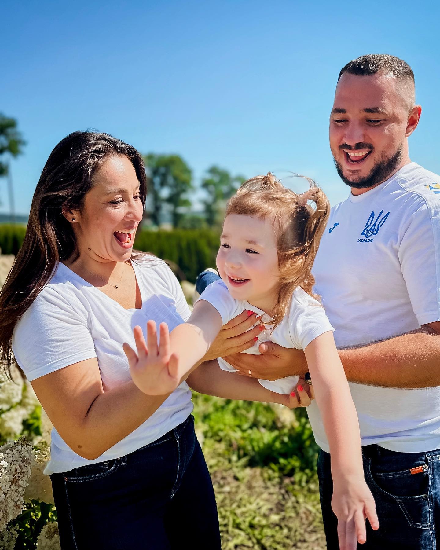 Свіжі знімки в Instagram, схоже, свідчать, що Наталці та Євгену вдалося порозумітися і досягти позитивних змін у відносинах. Вся родина постала у схожих вбраннях, що складалися із білих футболок та джинсів. Разом вони позували на тлі квіткових полів, демонструючи яскраві посмішки та емоції.