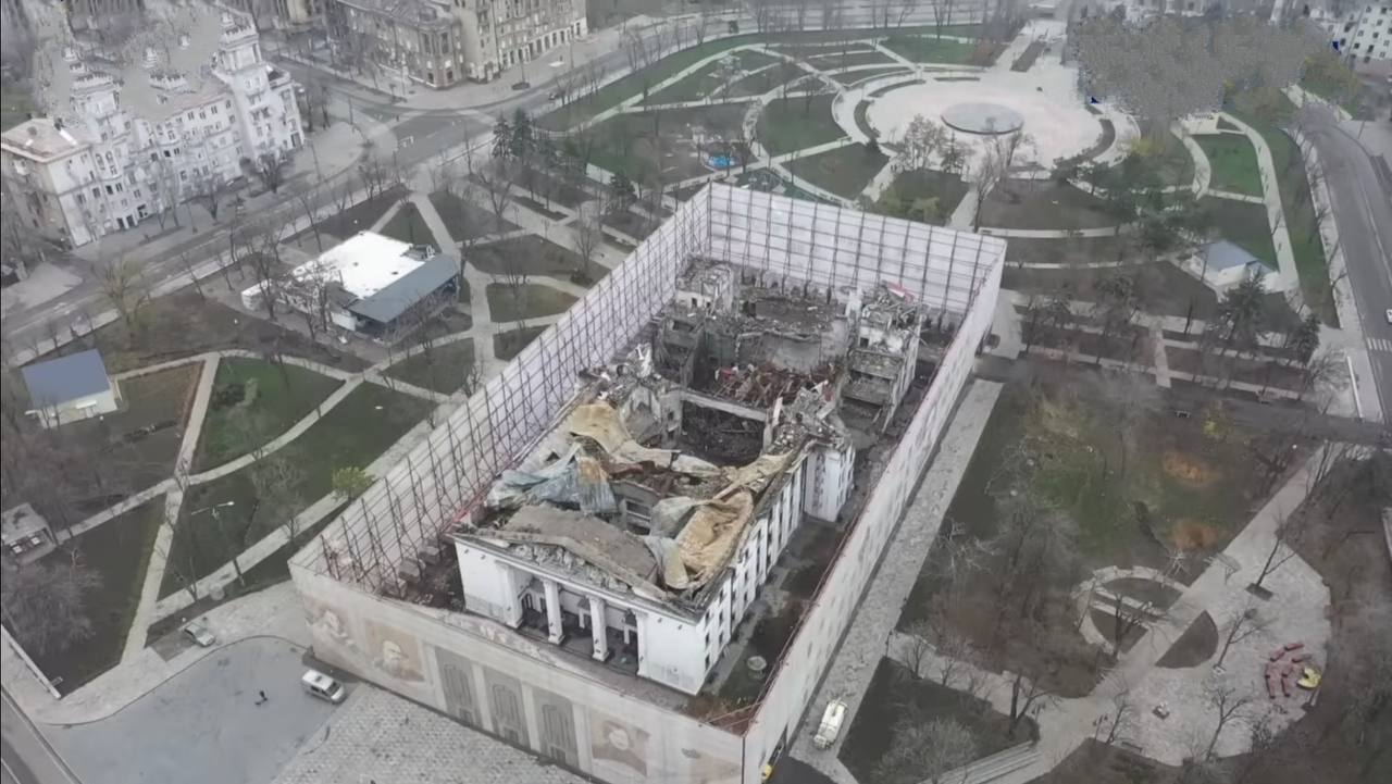 Окупанти намагалися сховати сліди своїх воєнних злочинів за ширмами, а 23 грудня 2022 року остаточно знесли руїни драмтеатру.