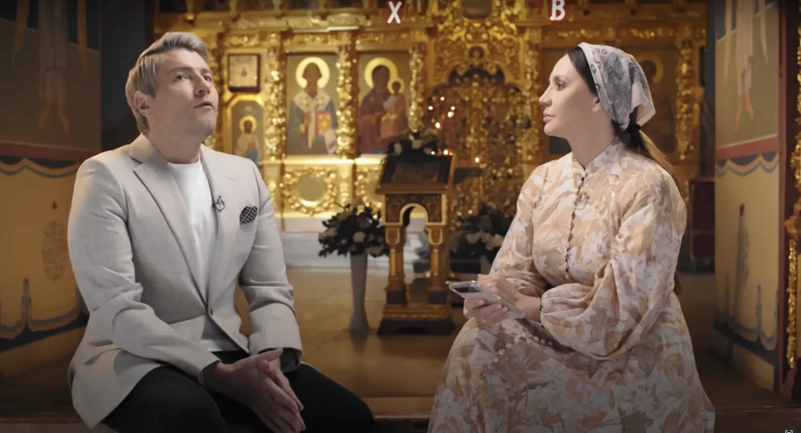 Також у ролику зрадниця спілкується зі співаком-путіністом Миколою Басковим, який каже: "Ми маємо дивитися навколо себе і всередину себе. Але вперед ми маємо дивитися з надією".