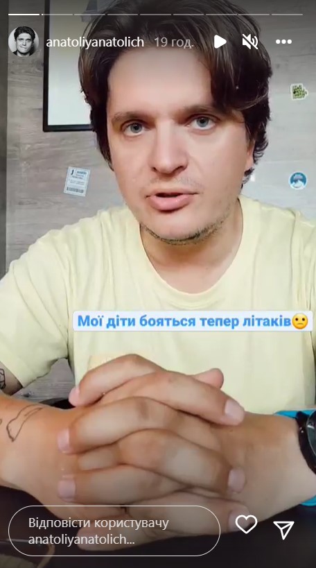"Я думаю, що у кожного з нас є події або звуки, які асоціюються з початком війни. Наприклад, мої діти коли чують звук літака, в них досі колотиться серце. Це велика травма, мені здається, на все життя. Хоча вони до цього літали безліч разів" - сказав ведучий у Instagram-stories.