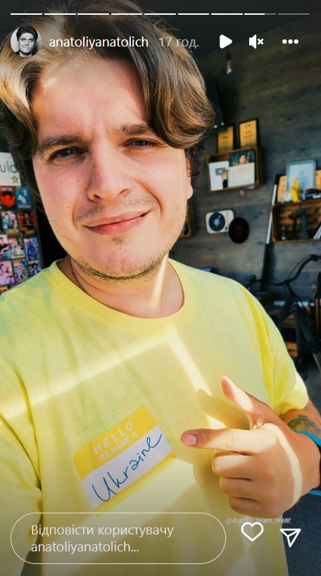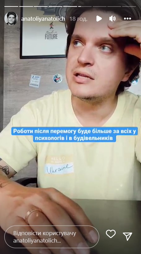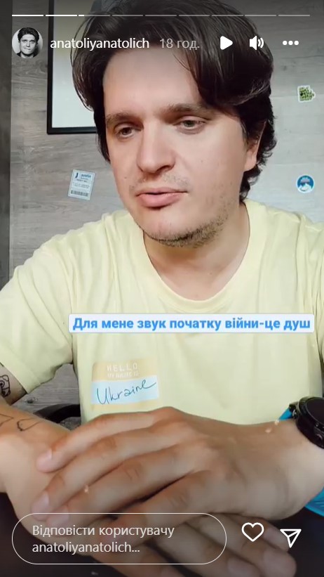 Анатоліч зізнався, що для нього перша асоціація з початком війни в Україні - це звук душу. Бо зранку 24, коли почалися обстріли, він саме був там. За словами зірки, самих вибухів він не чув, однак відчув дивну вібрацію.