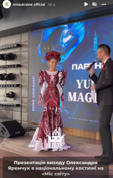 Напередодні вильоту у Києві відбувся прес-бранч, під час якого були представлені два вбрання для Miss World: національний костюм та вечірня сукня для фінального виходу. Обидва образи створили українські дизайнери.