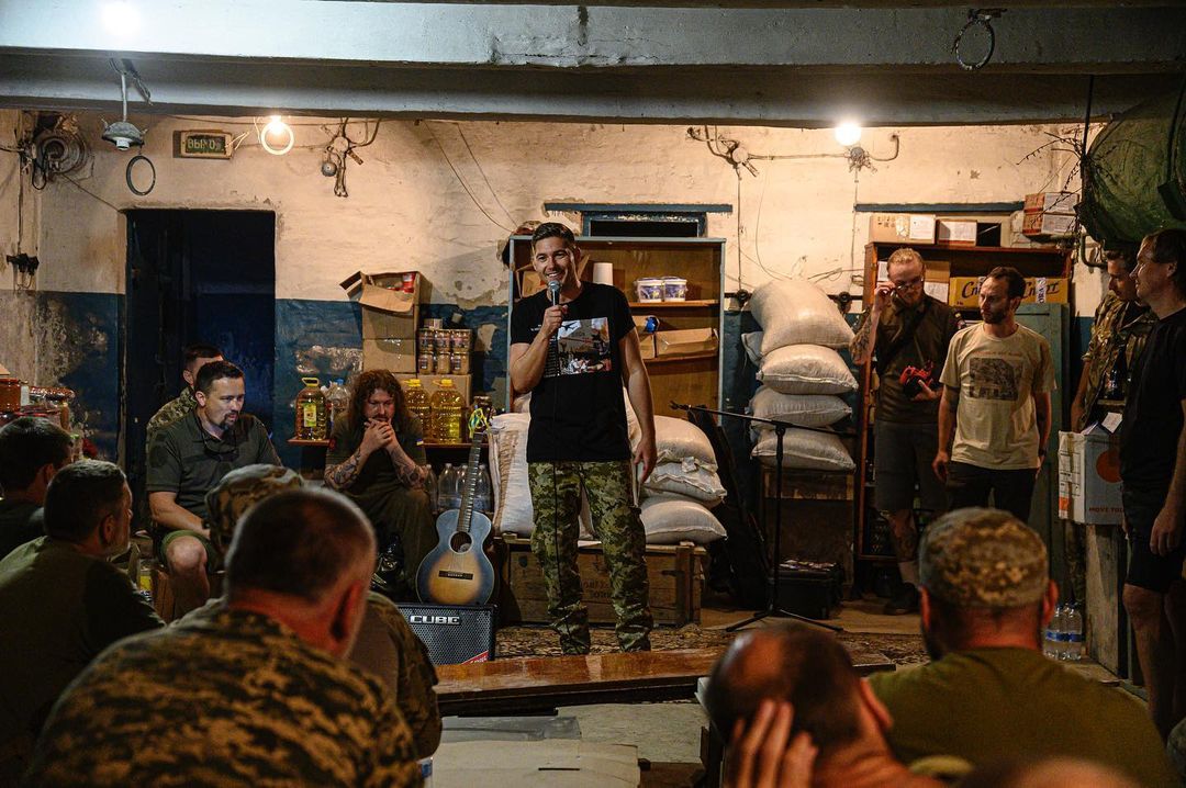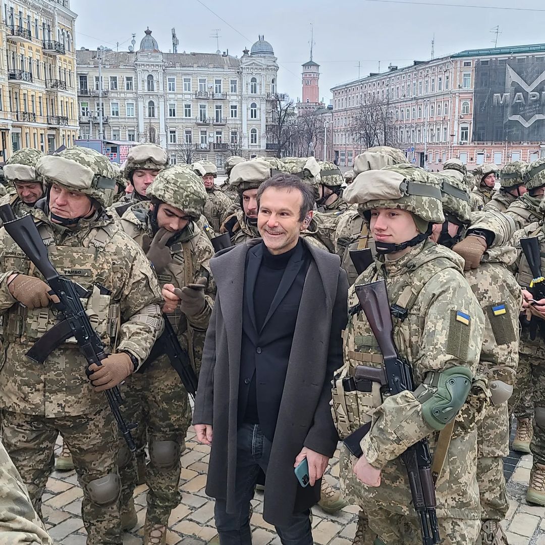 Лідер групи "Океан Ельзи" у студентстві закінчував військову кафедру, і після 24 лютого приєднався до лав ЗСУ. Зараз він має звання старшого лейтенанта, а його робота полягає у підтримці військових. Вакарчук протягом року виступав перед захисниками України в різних гарячих точках, включаючи Бахмут.